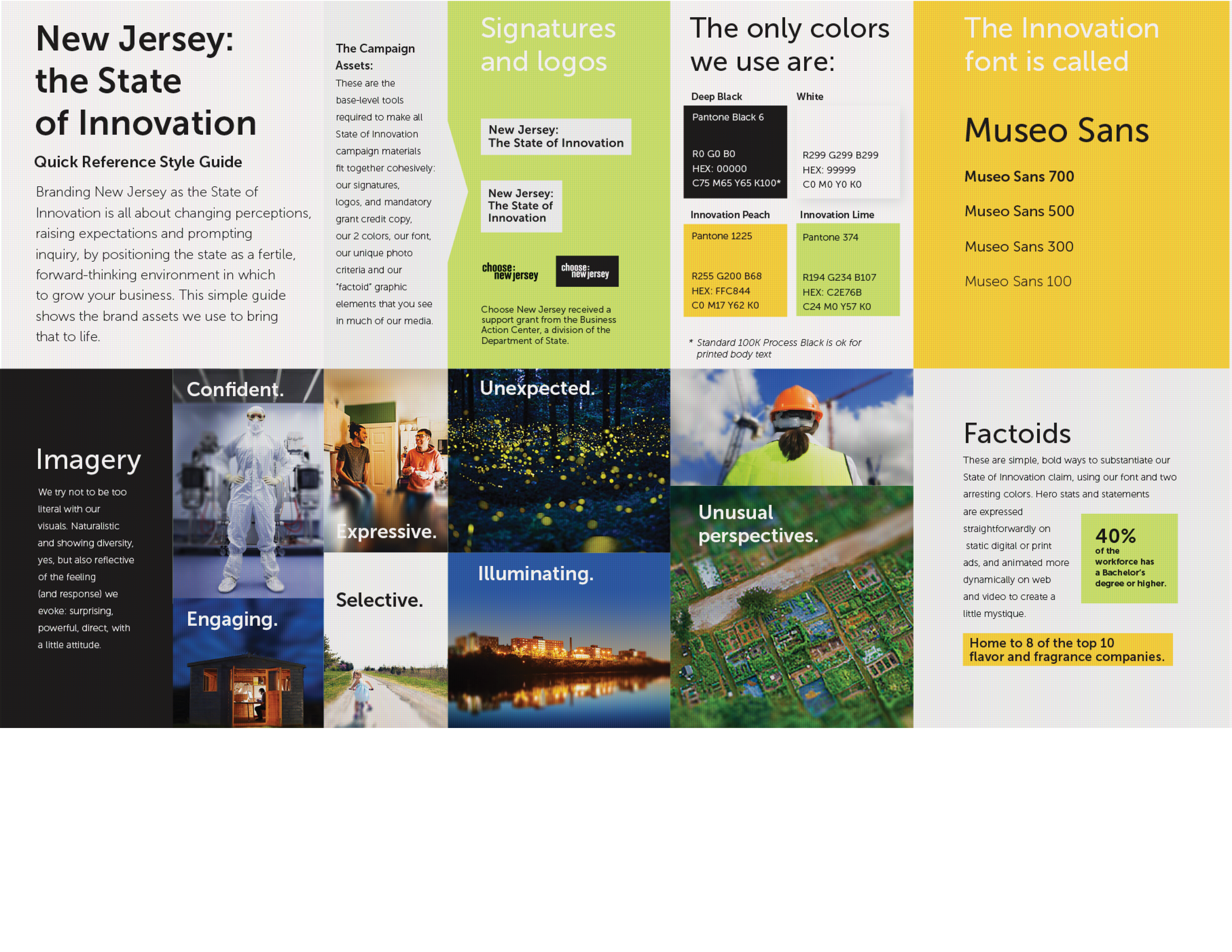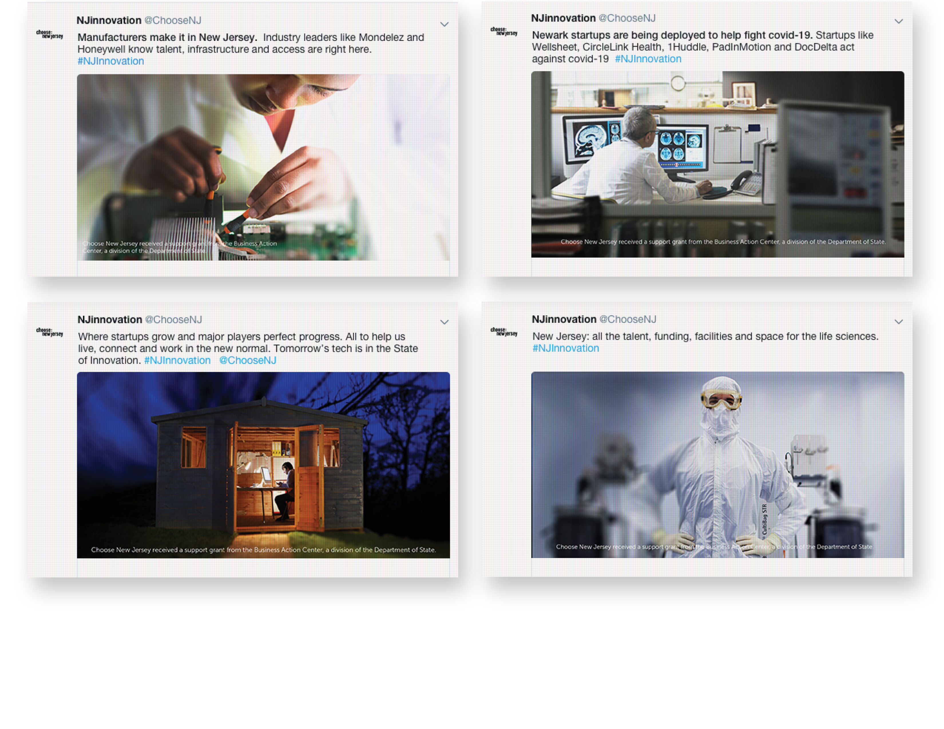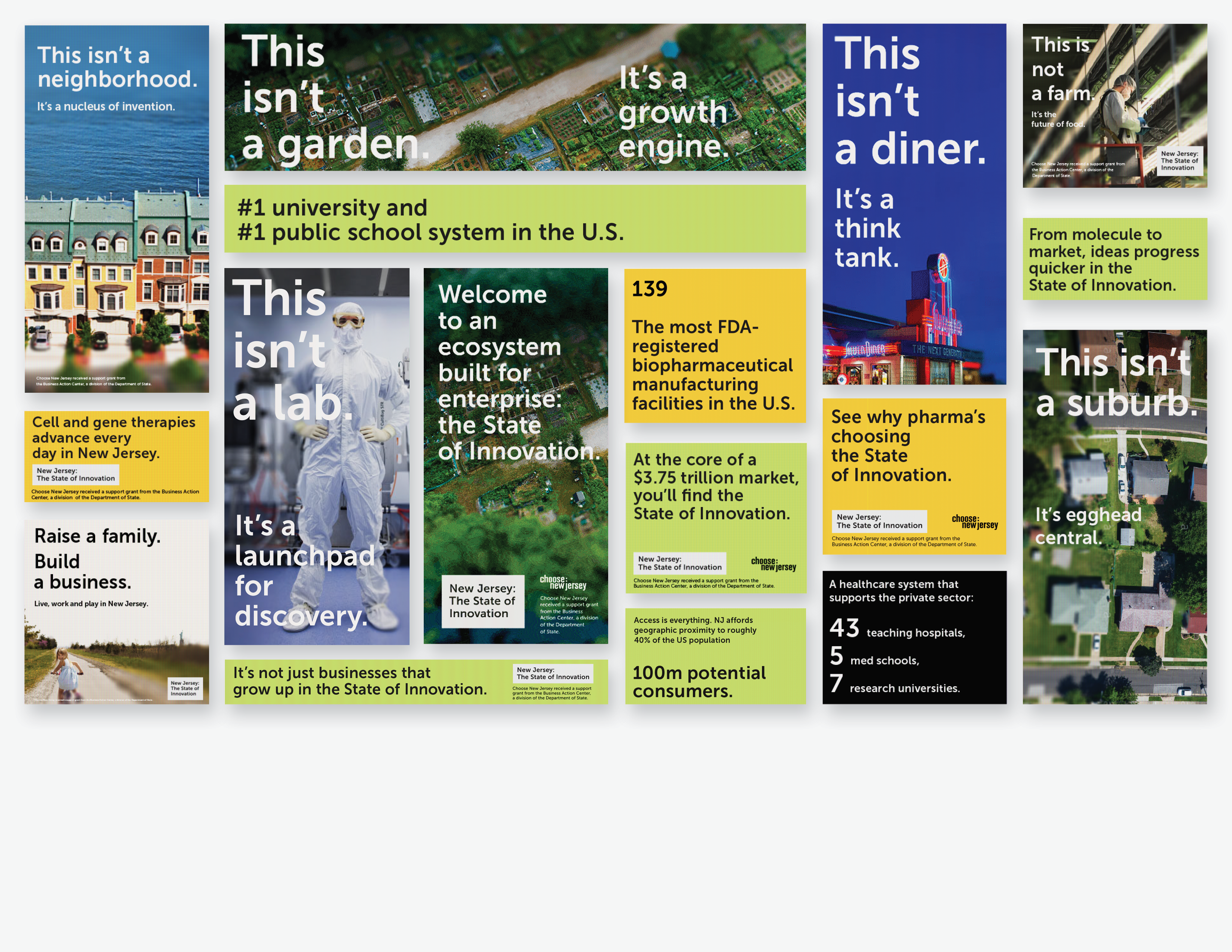 It leaned on direct, occasionally counterintuitive messaging and punctuated news sites and social media with raw, brightly colored statistical tidbits designed to intrigue. These ads targeted key industries for New Jersey: advanced manufacturing, technology, life sciences, film, and food, all aligning with the Governor’s assertion that New Jersey has always been a State of Innovation.